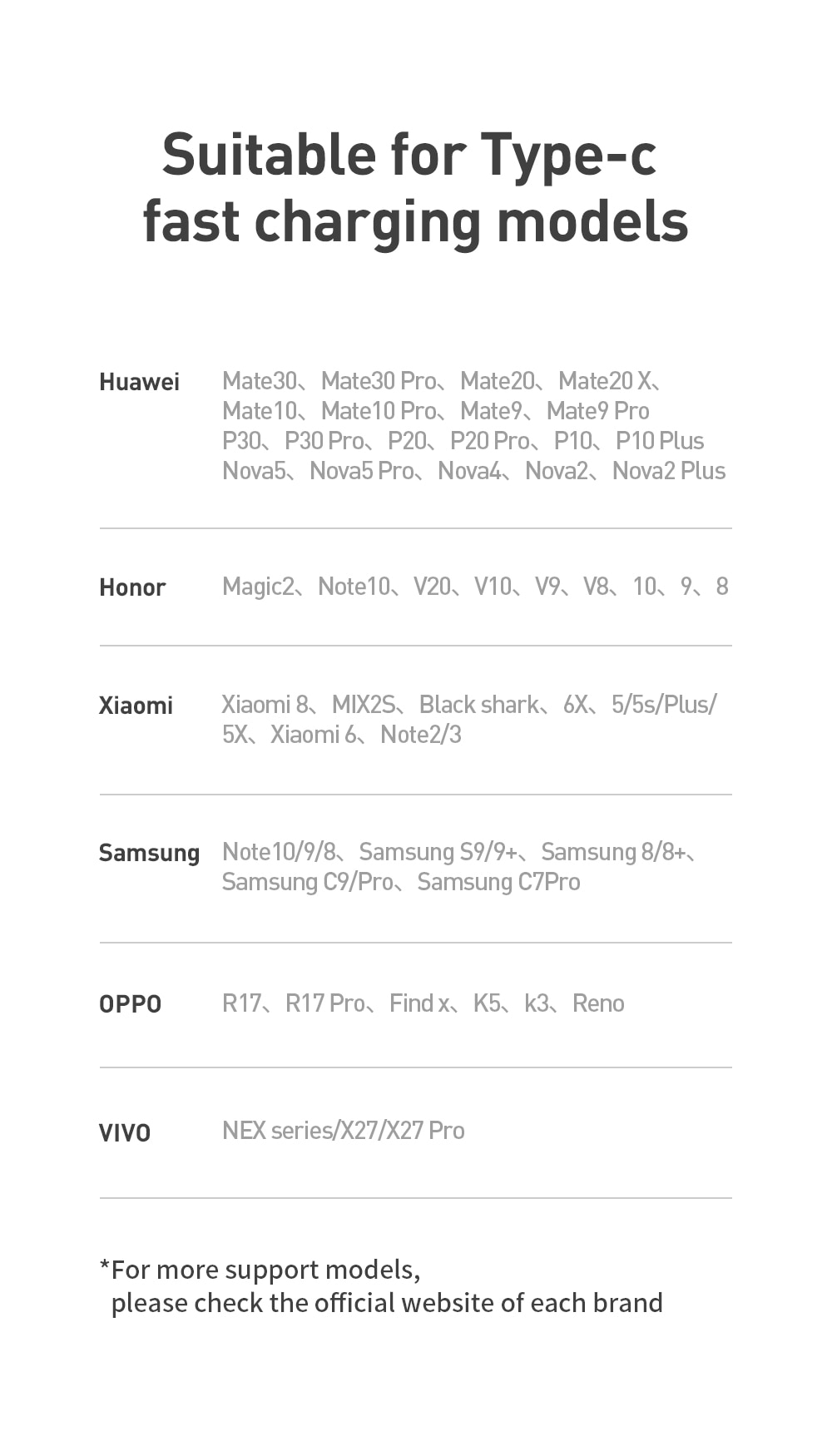 מאפיינים: תואם מלא לטעינה מהירה, תמיכה ב-Huawei, סמסונג, אוסף של פתרונות טעינה מהירה, קו אחד לכל היותר מספר קווים.
