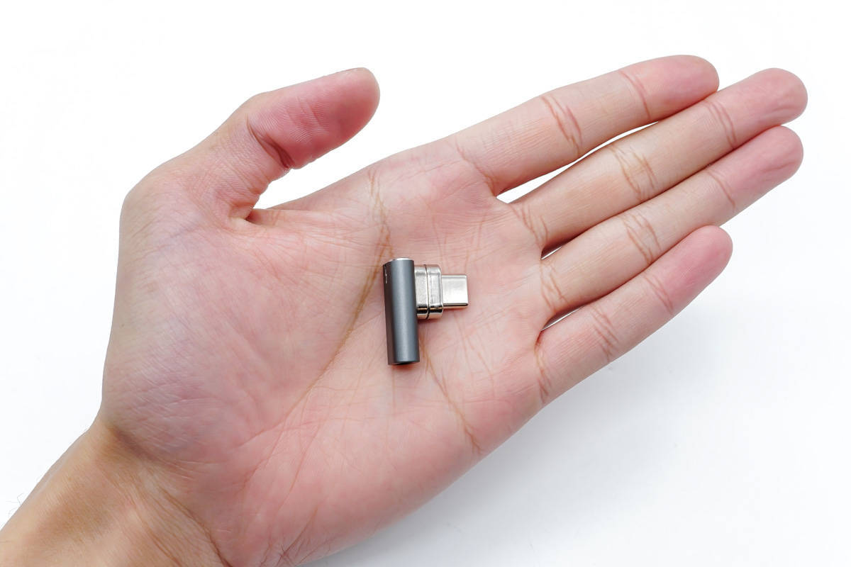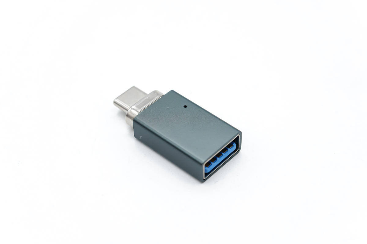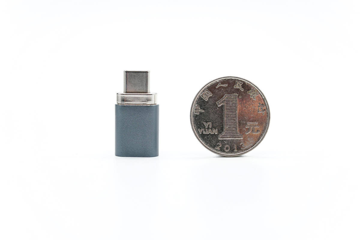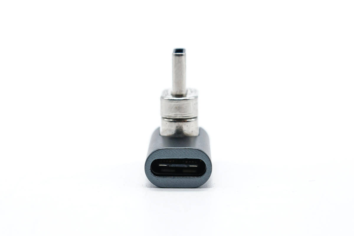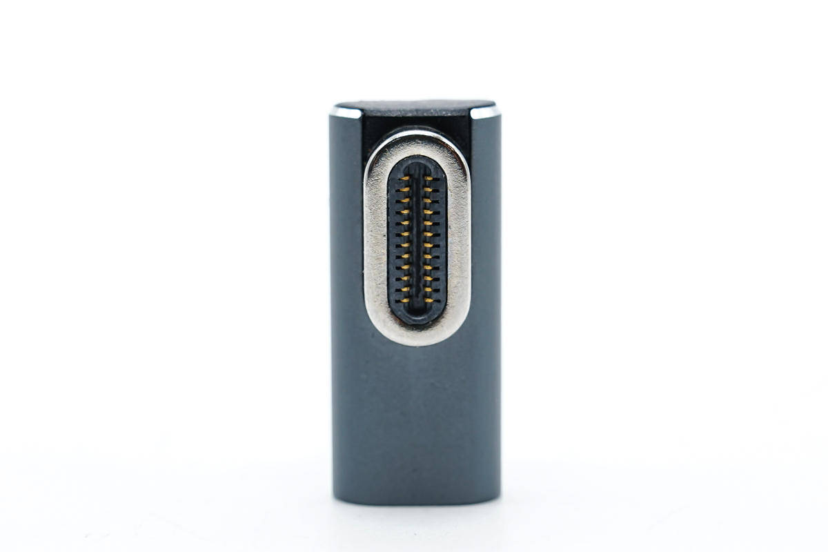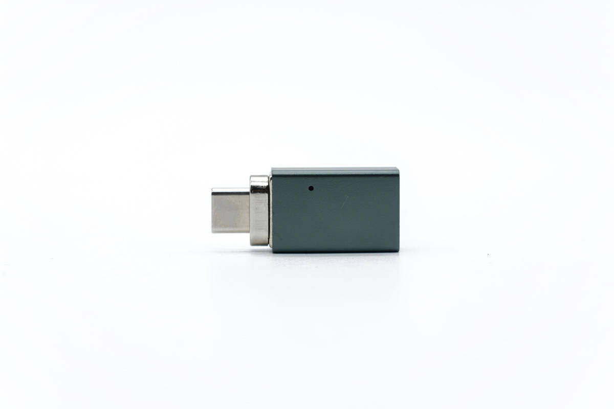 קצה הקלט של המתאם מאמץ יציאת USB-C נקבה לחיבור כבלים.