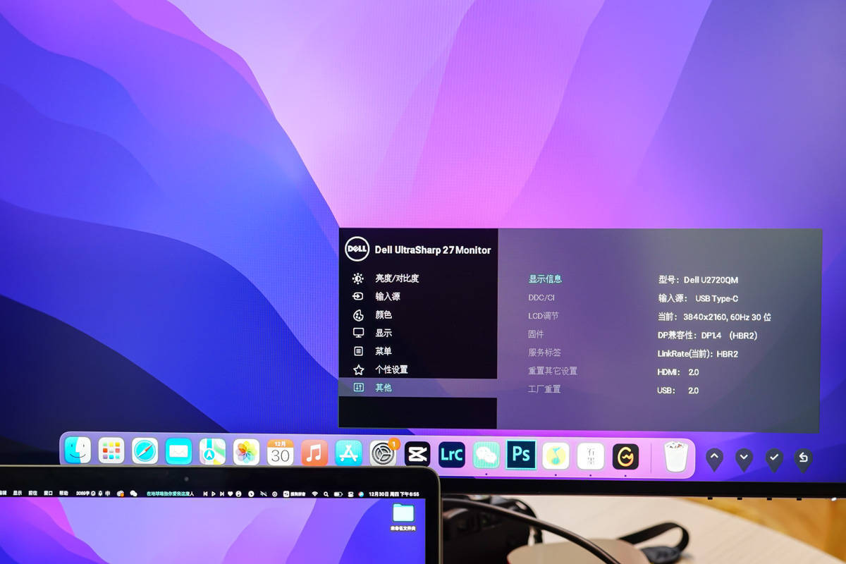לאחר מכן, בואו נסתכל על שידור הווידאו, חבר את כבל הנתונים Thunderbolt 3 לצג Dell U2720QM 4K דרך המתאם.