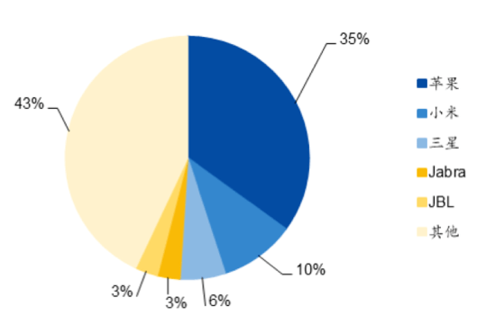 מנקודת המבט של הפצת המותג, שוק אוזניות TWS פוצץ לראשונה על ידי אפל. לאחר מספר שנים של פיתוח, למוצר שלה AirPods יש נתח שוק גבוה מאוד בשוק הבינוני-גבוה. על פי נתוני הניתוח של Counterpoint, נכון לרבעון השני של 2020, שלוש החברות המובילות בשוק ה-TWS הן אפל (35%), שיאומי (10%) וסמסונג (6%). שוק.