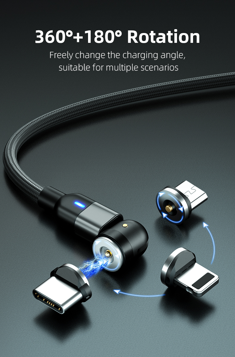 540-דרגה מסתובבת 3 ב-1 מגנטי טעינה מהירה כבלי Pogo Pin
